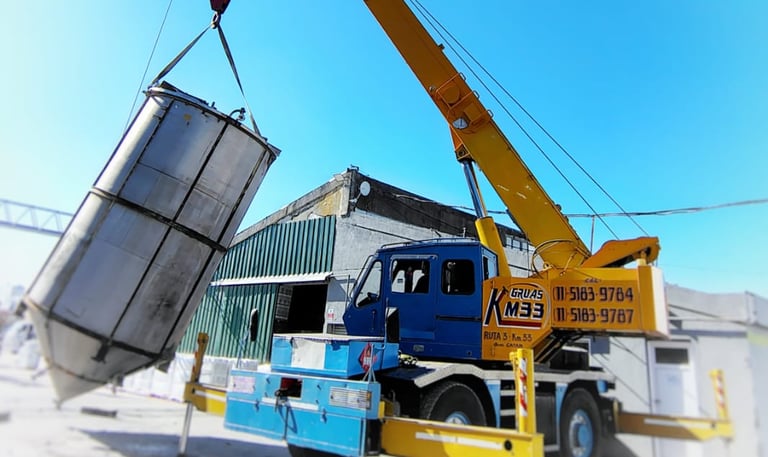 Servicio con grúa, tijeras, manipuladores, brazos extensibles, y operarios especializados para la reubicación segura de equipos pesados dentro de la planta.