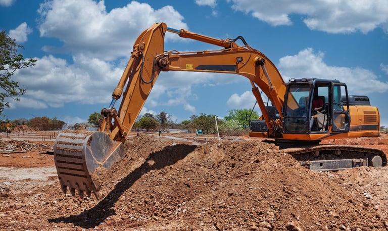 Ejecución de movimientos de tierra, compactación, asfalto, bases de hormigón armado y plateas para instalaciones industriales.